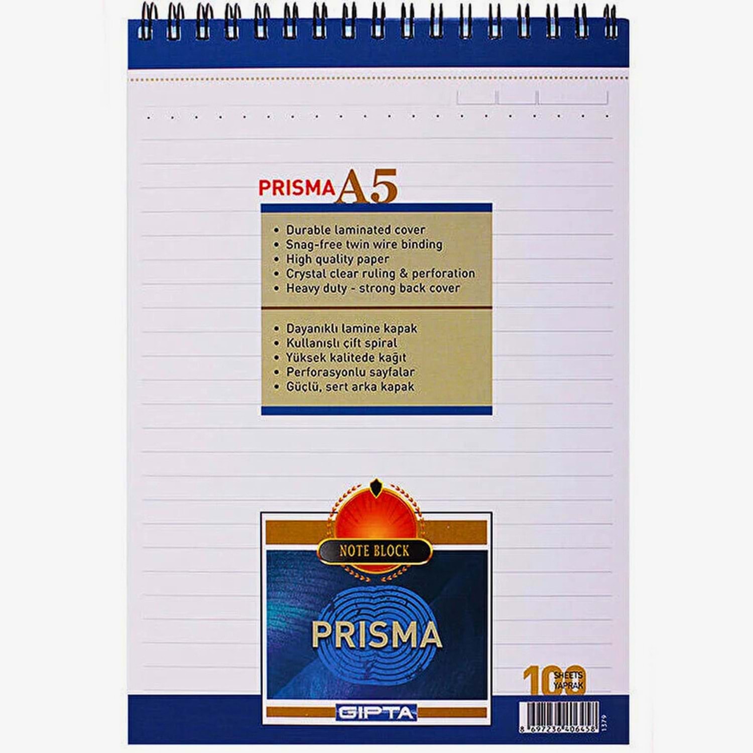 Prisma A5 Spiral Bloknot – 100 Yaprak, Çizgili, Karton Kapak