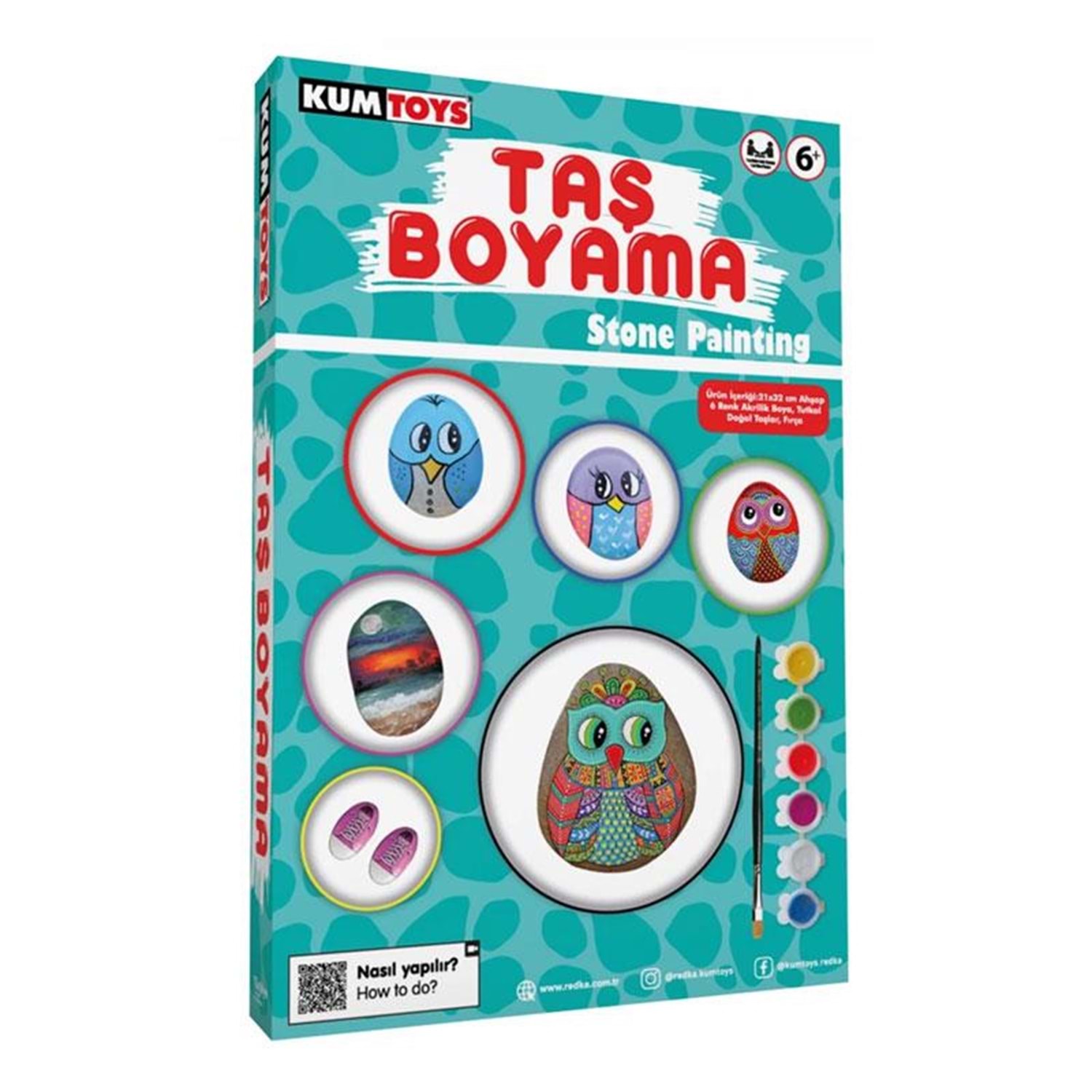 Kumtoys taş boyama seti, çocukların yaratıcılığını ve el becerilerini geliştirmeye yönelik eğitici ve eğlenceli bir etkinlik sunar. Doğal taşlar üzerine boya yapma deneyimi ile çocuklar renkleri tanır, desen oluşturur ve kendi tasarımlarını ortaya çıkarır.