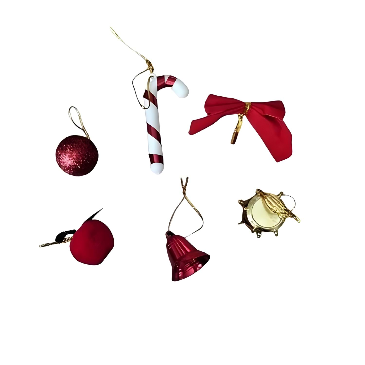 6’lı Mini Yılbaşı Süsü Seti – Ağaç Süsleri, Top, Zil, Şeker Kamışı ve Kurdele – Tek Paket