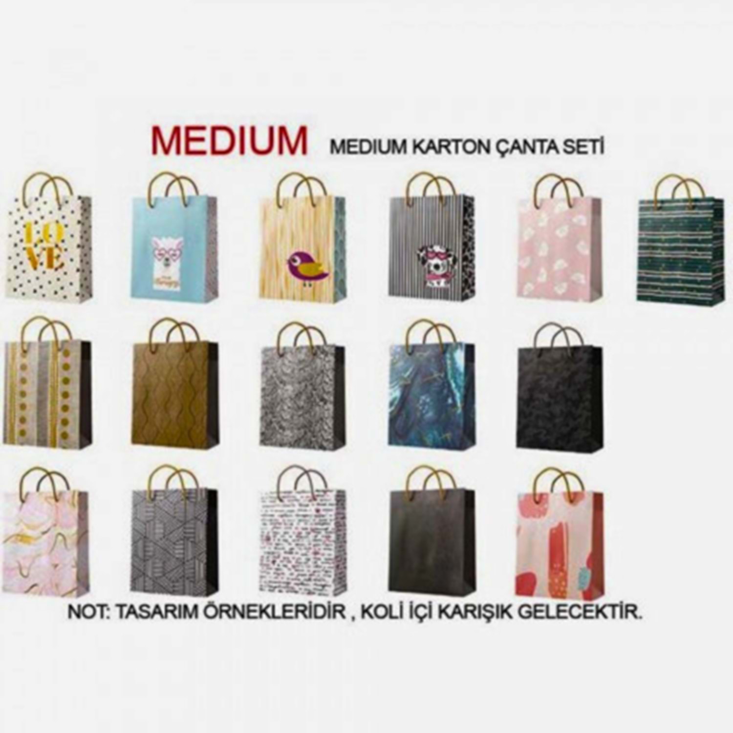 Medium karton çanta seti, hediye paketleme, butik alışveriş, ürün sunumu ve özel günler için ideal boyuta sahip kullanışlı ve zarif bir çanta setidir.