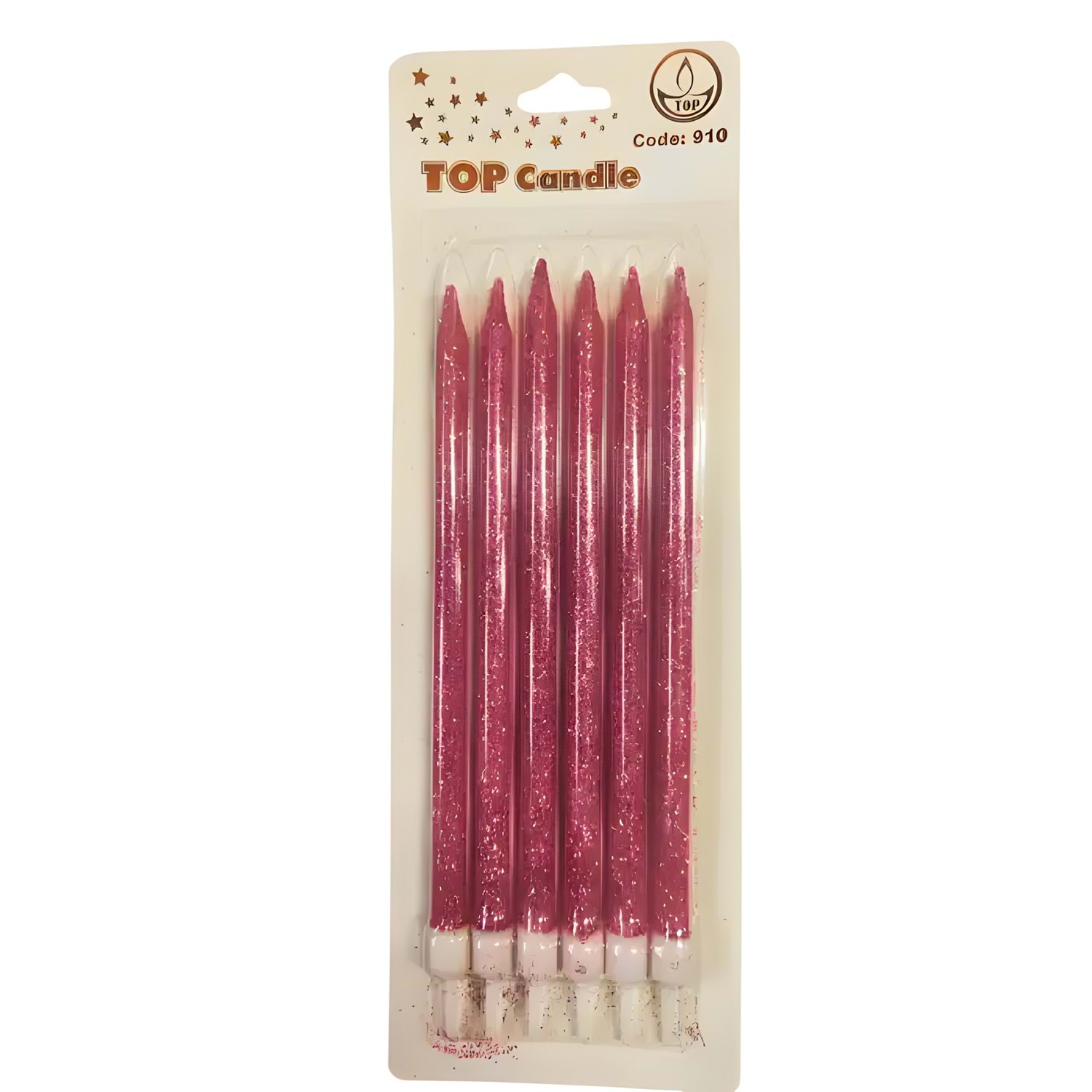 Simli Uzun Doğum Günü Mumu – Tek Adet (Pembe Simli)