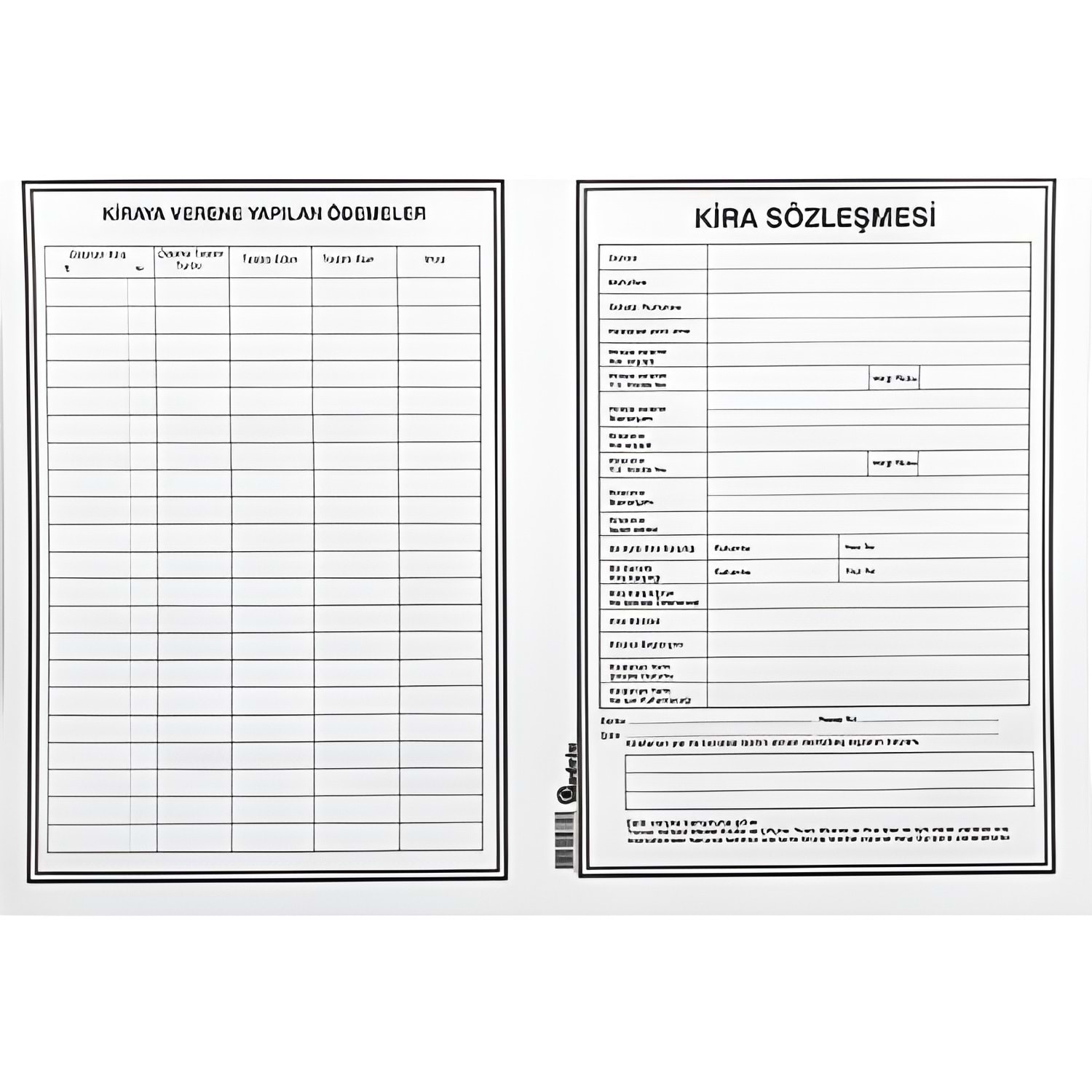 Dayanıklı kağıt yapısı ve düzenli alanlarıyla tüm kira detaylarını kolayca doldurabilirsiniz.