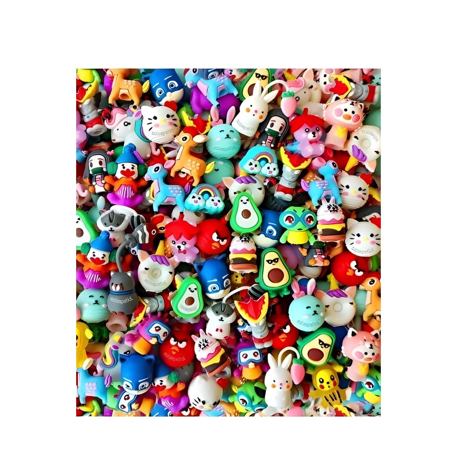 Her bir silgi farklı figür ve renktedir (hayvan, meyve, karakter vb.).
