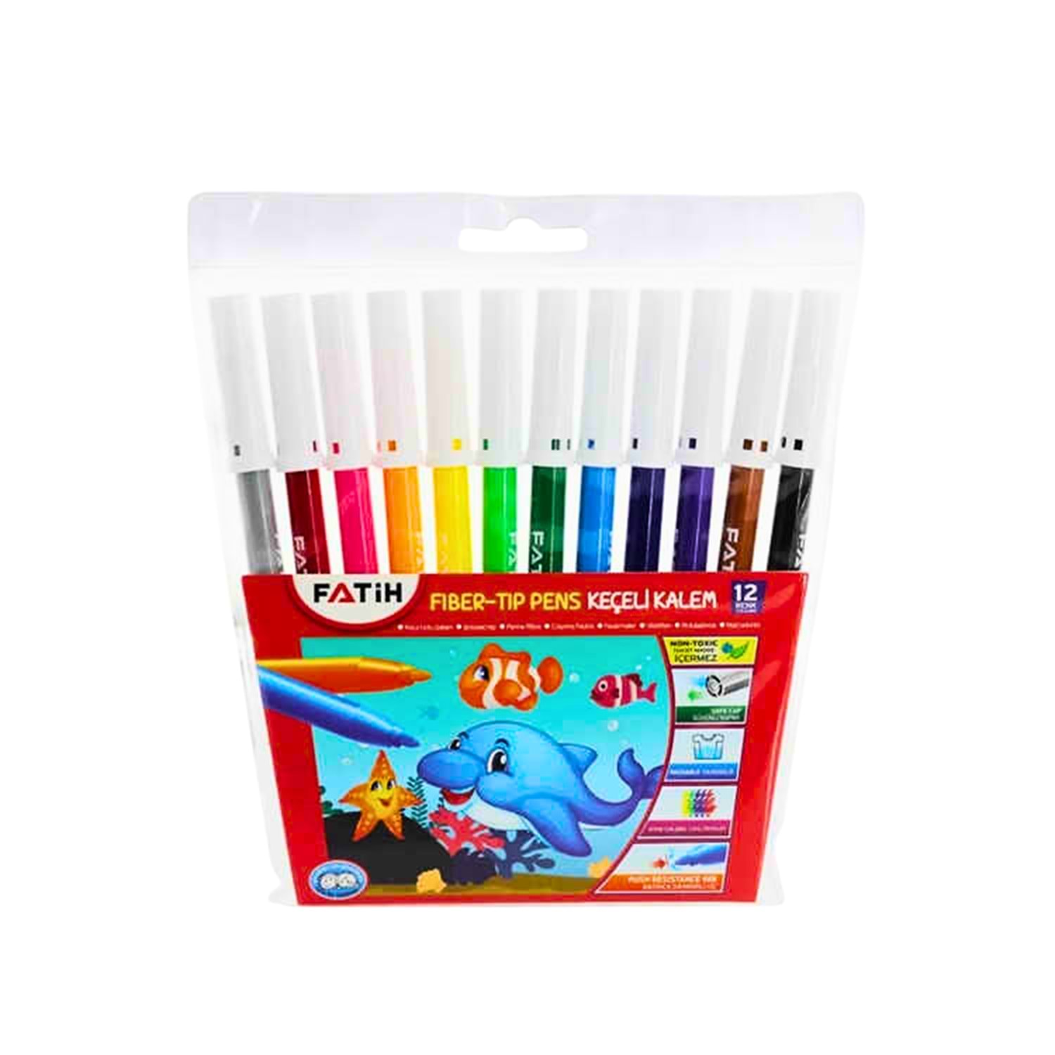Fatih 12 Renk Fiber Tip Keçeli Kalem Seti – Su Bazlı, Yıkanabilir, Non-Toxic