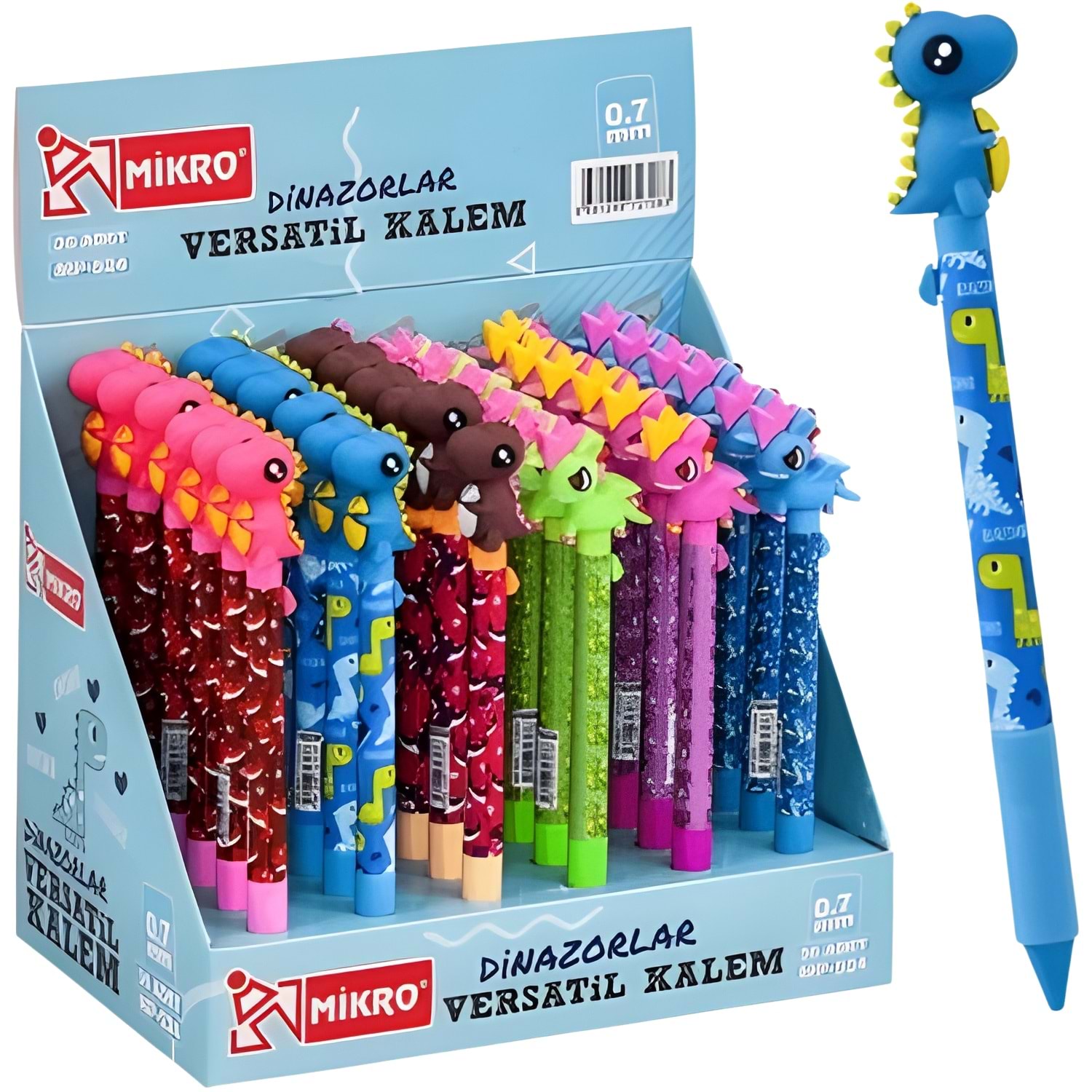 mikro dinazor kalem, dinazor versatil kalem, 0.7 mm versatil kalem, figürlü kalem, çocuk kalemi, eğlenceli kalem, mekanik kalem, erenay toys kırtasiye