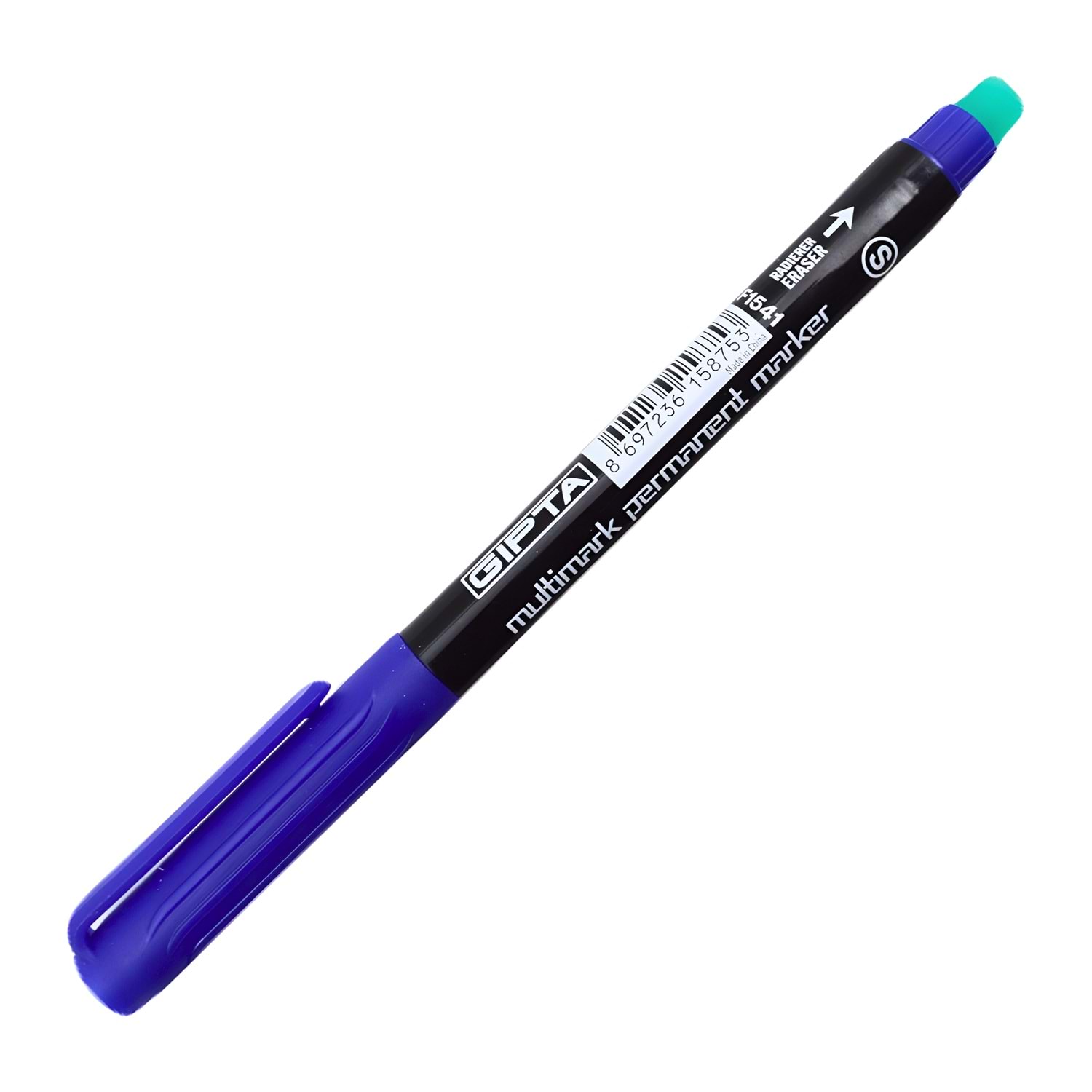 Gıpta Multimark Permanent Marker Silgili Asetat Kalemi - Mavi: Kalıcı mürekkep, ince uç ve silgili tasarımıyla cam, plastik ve metal yüzeylerde üstün performans!
