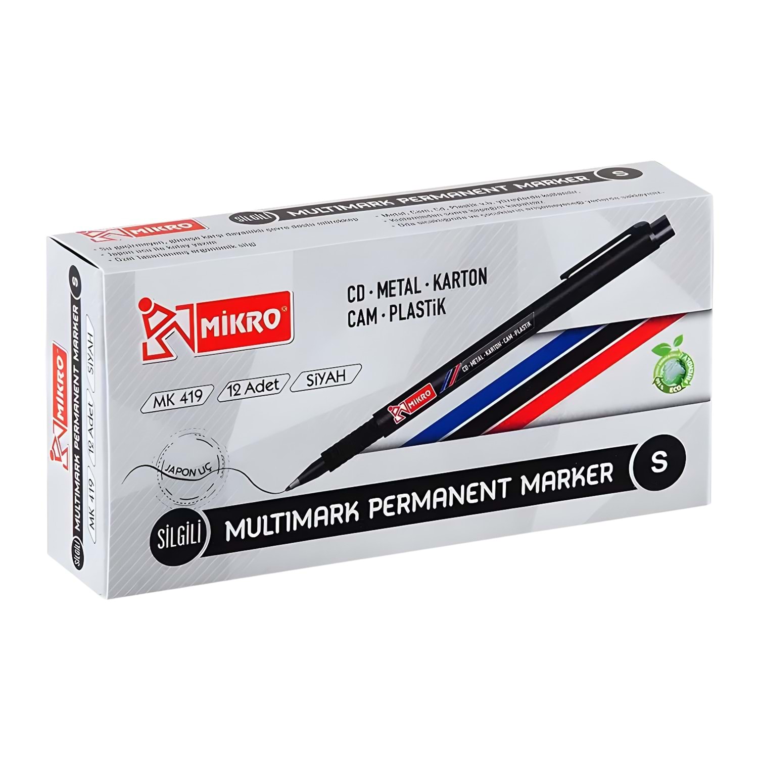 mikro mk-419 s, mikro permanent marker, kalıcı marker, ince uçlu marker, siyah marker kalem, silgili marker, cd marker kalem, cam metal plastik kalem, kalıcı yazı kalemi, mikro tekli marker
