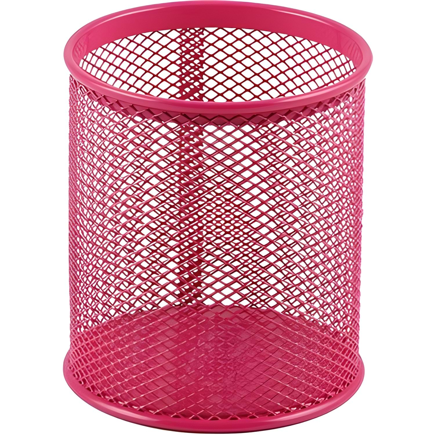 Pembe rengiyle canlı, enerjik ve dekoratif bir görünüm sunarken; dayanıklı metal gövdesi uzun ömürlü kullanım sağlar. Kalem, makas ve fırça gibi kırtasiye malzemelerinizi düzenli bir şekilde muhafaza edebilirsiniz.