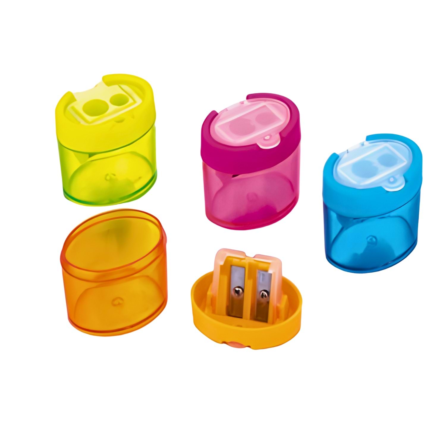 Renkli tasarımıyla dikkat çeken Hazneli Çift Delikli Kalemtıraş, öğrencilerin en çok tercih ettiği okul malzemelerindendir.