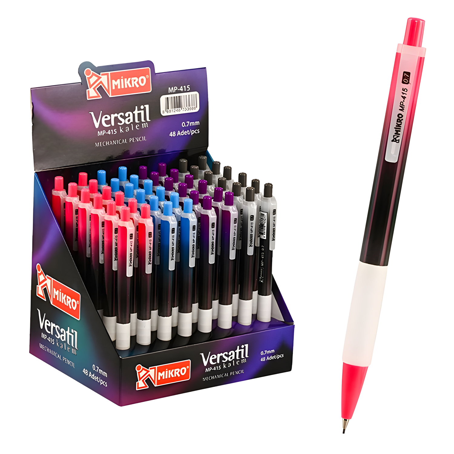 mikro versatil kalem, mikro mp-415, uçlu kalem 0.7 mm, mekanik kalem, asortili versatil kalem, mikro kalem, okul kalemi, ofis kalemi, tekli uçlu kalem, yazı kalemi
