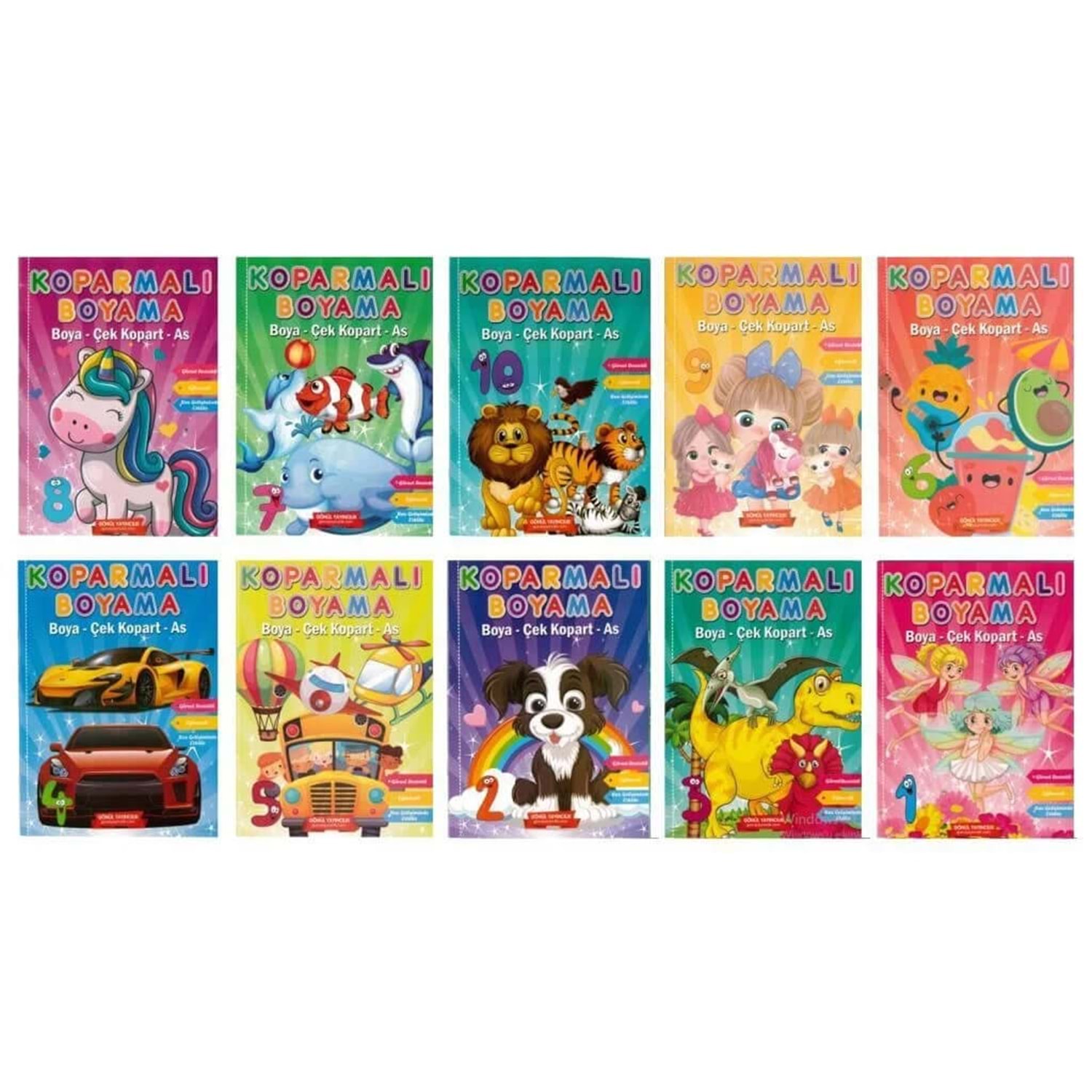 Koparmalı boyama kitabı, boya–çek–kopart özellikli sayfalarıyla çocukların hem eğlenmesini hem de el becerilerini geliştirmesini sağlayan eğitici bir boyama kitabıdır.