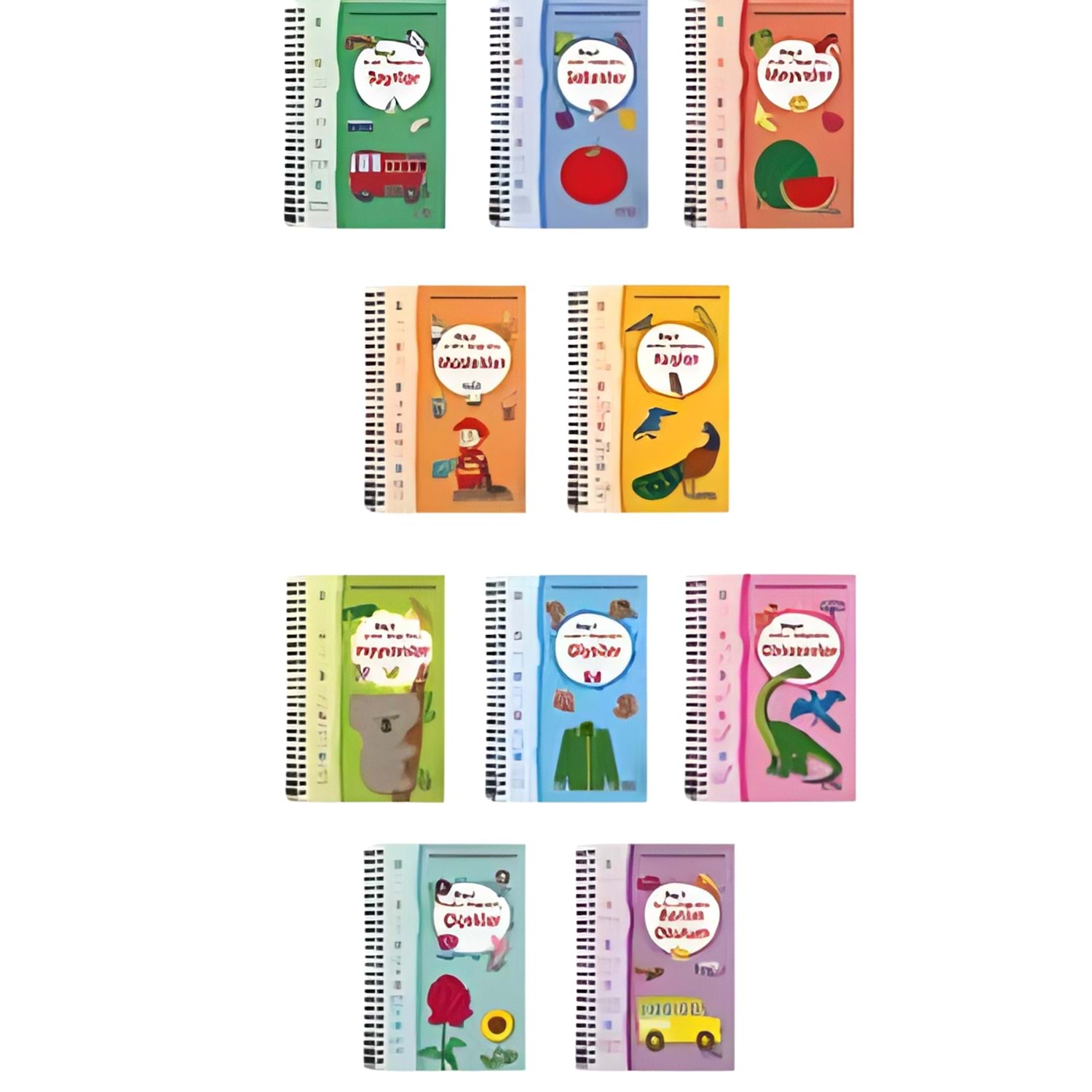 Her kitapta farklı temalar: Sebzeler, Meyveler, Hayvanlar, Taşıtlar, Giysiler, Renkler, Şekiller, Meslekler, Doğal Nesneler, Çiçekler