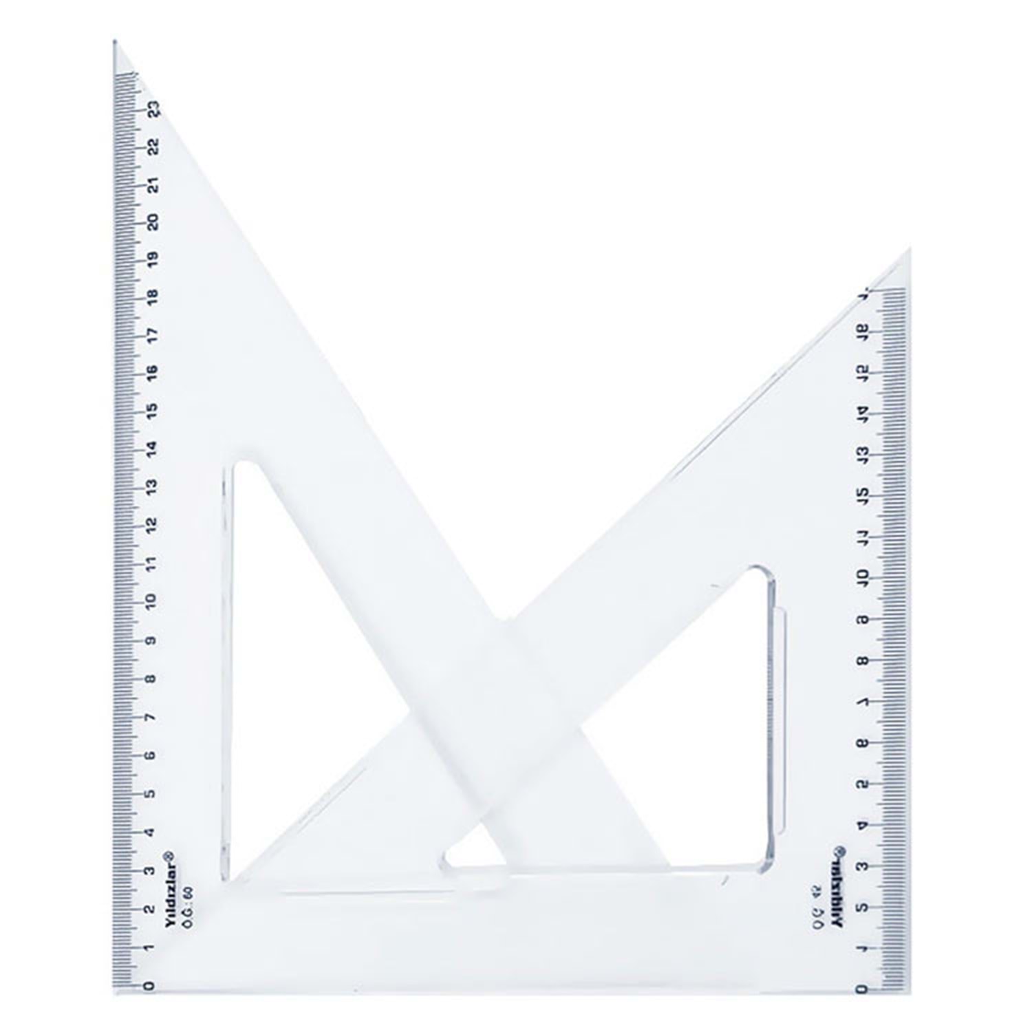 Üzerinde 45° ve 60° açıları bulunan özel üçgen cetvel yapısıyla açı çizimi ve doğru çizgi çizmede yüksek hassasiyet sağlar.