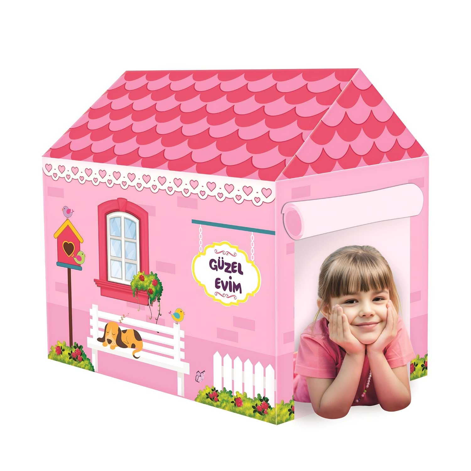 Güzel Evim Oyun Evi – Pembe Çocuk Oyun Çadırı (Karton Malzeme, Kolay Kurulumlu)