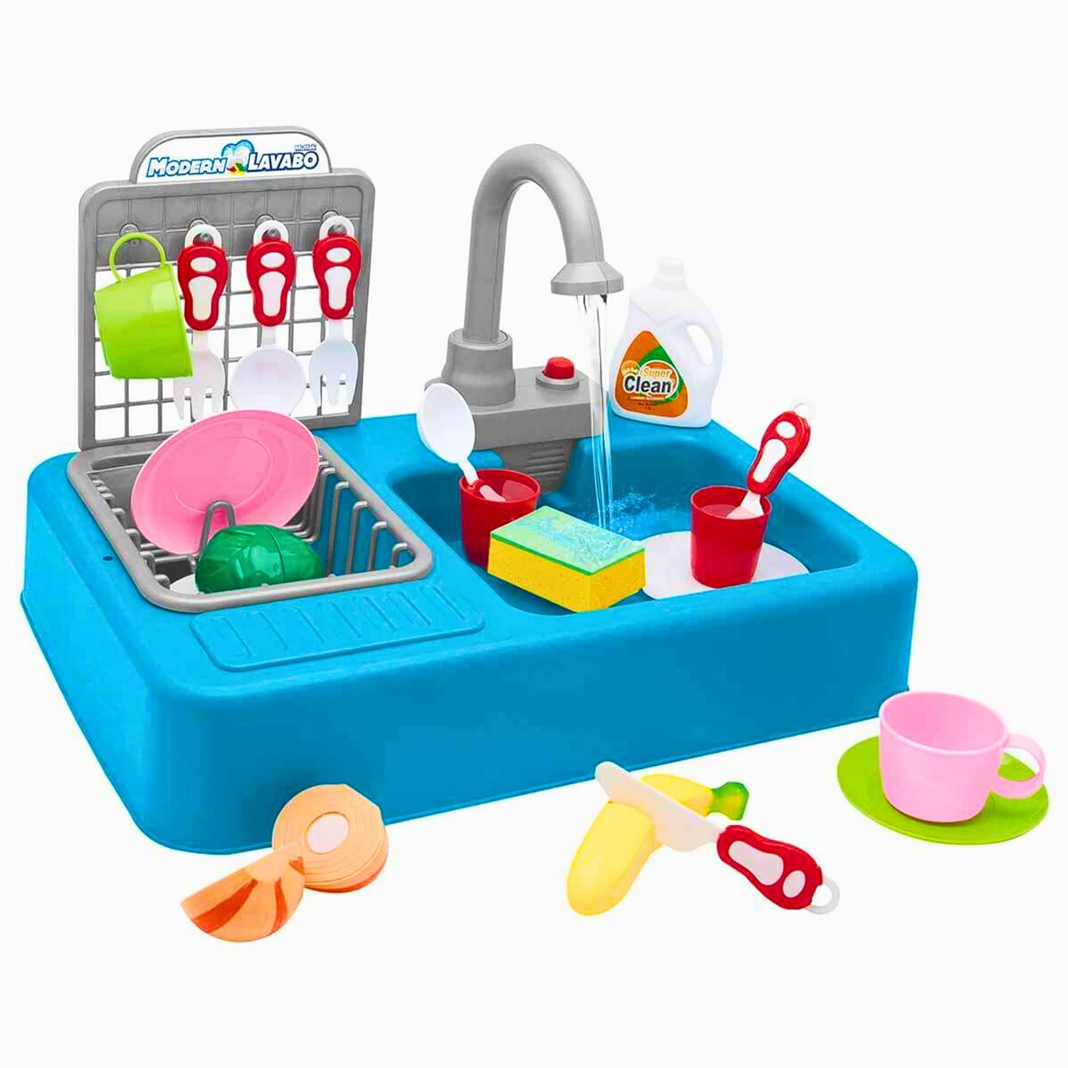 Kayyum Modern Pilli Lavabo seti, çocukların evcilik ve mutfak oyunlarını gerçeğe en yakın şekilde oynamalarını sağlar.