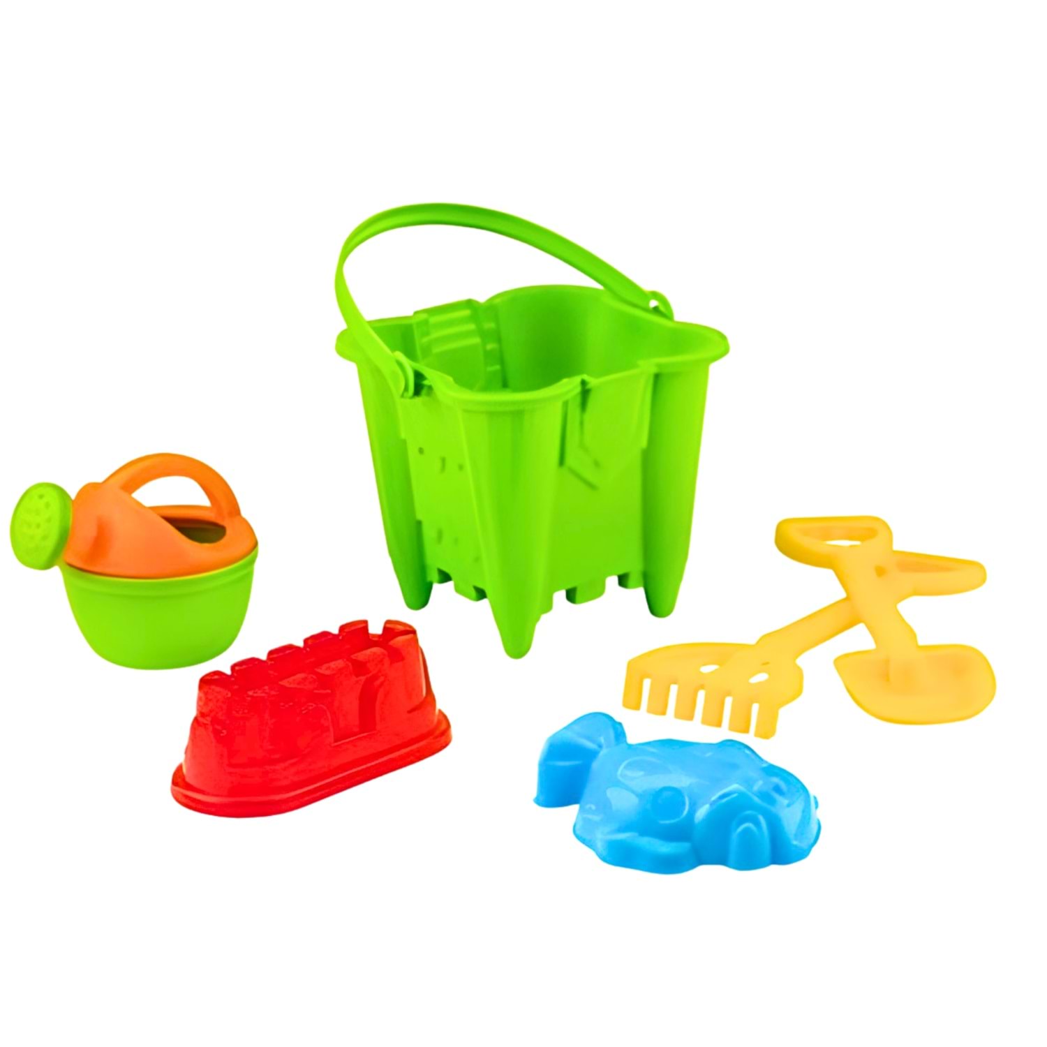 Set İçeriği: Kova, kürek, tırmık ve 3 farklı kum kalıbı