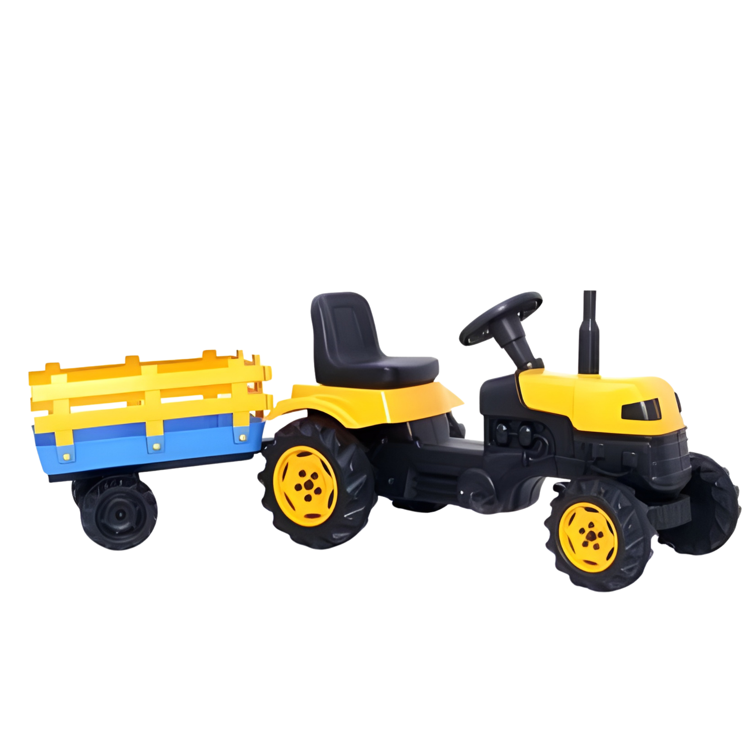 Römorklu pedallı oyuncak traktör, çocukların eğlenirken fiziksel ve zihinsel gelişimini destekleyen dayanıklı ve güvenli bir oyuncaktır. Canlı sarı rengi ve römork detayı sayesinde gerçek traktör deneyimini oyunla buluşturur.