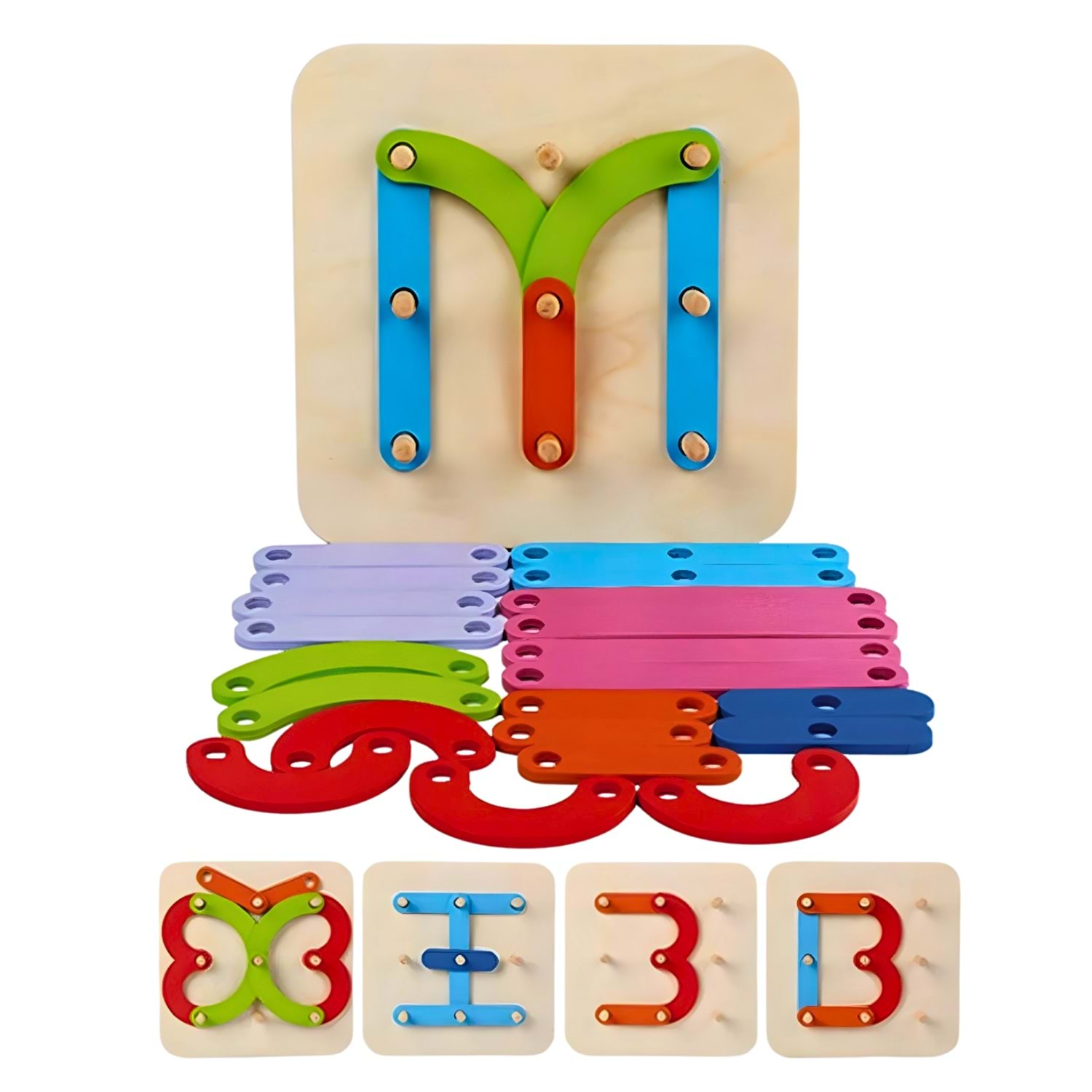 ahşap harf yapma seti, montessori eğitim oyuncağı, sok tak ahşap oyuncak, eğitici ahşap set, şekil oluşturma oyunu, çocuk beceri geliştirici oyuncak, renkli ahşap oyun, el-göz koordinasyon oyunu