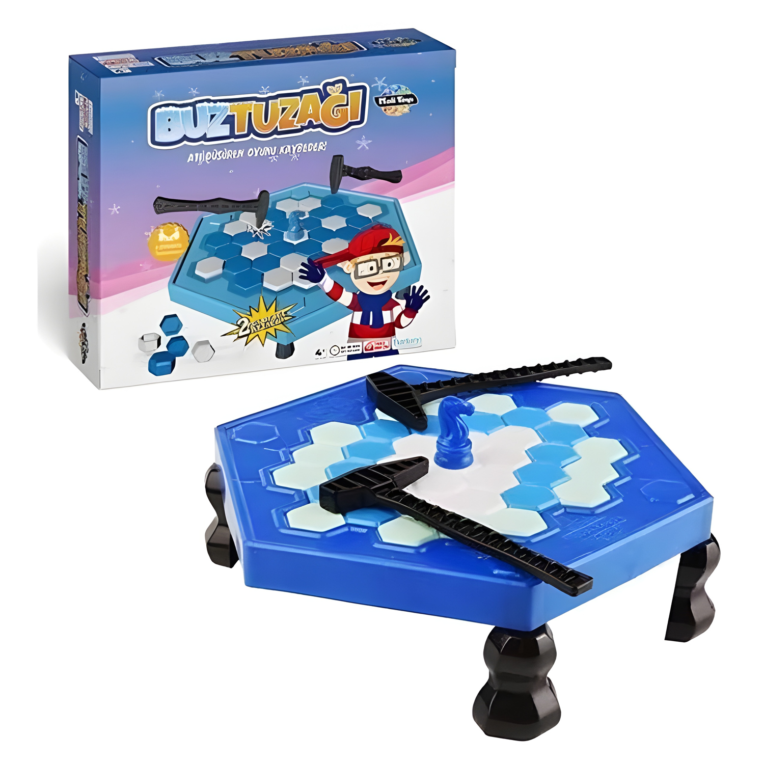 Moli Toys Buz Tuzağı, çocuklar ve aileler için tasarlanmış eğlenceli bir akıl ve denge oyunudur. Amaç, buzları dikkatlice kırarken figürün düşmesini engellemektir. El–göz koordinasyonu ve stratejik düşünmeyi destekler.