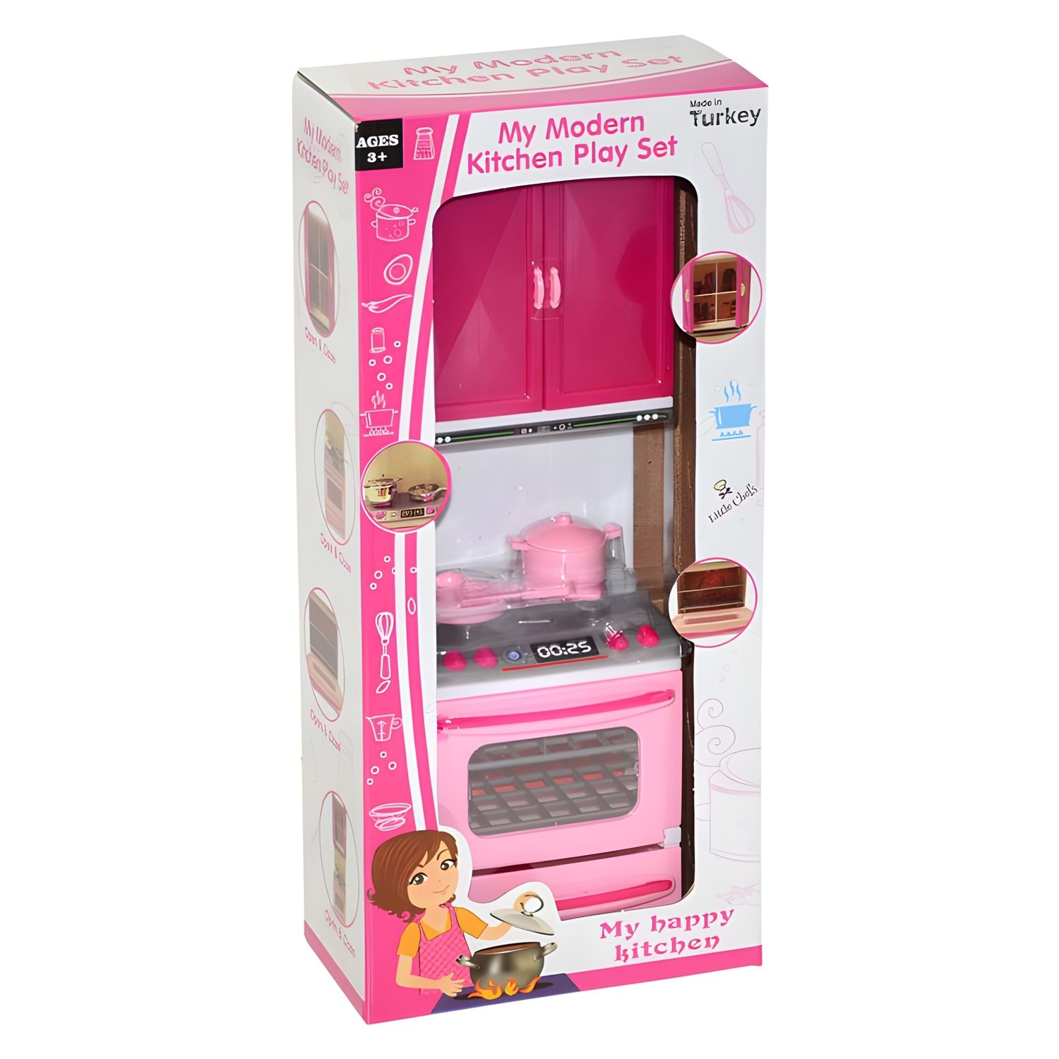 My Modern Kitchen Play Set – Mini Pembe Oyuncak Mutfak Seti | Fırın ve Dolaplı, Sesli Işıklı, 3+ Yaş | My Happy Kitchen