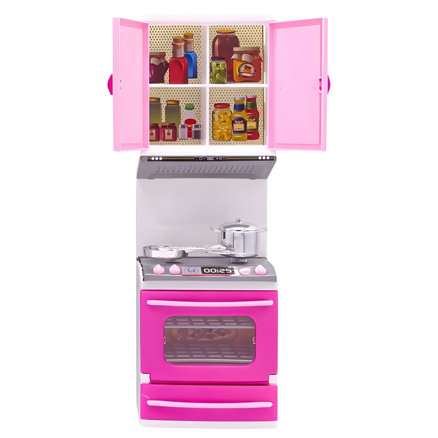 Gerçek mutfak görünümüne sahip bu oyuncak, dolap kapakları açılabilir, fırın detayı bulunur ve çocukların hayal gücünü destekler.