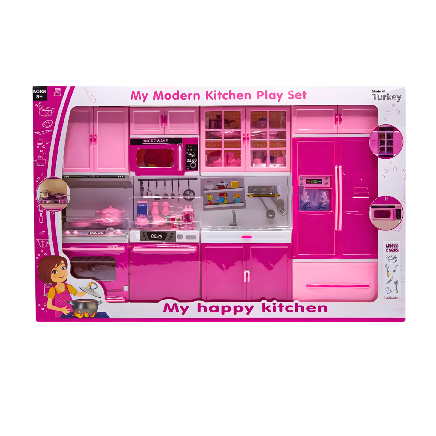 My Modern Kitchen Play Set – My Happy Kitchen, çocukların yaratıcılığını ve rol yapma becerilerini geliştiren modern tasarımlı bir oyuncak mutfak setidir.