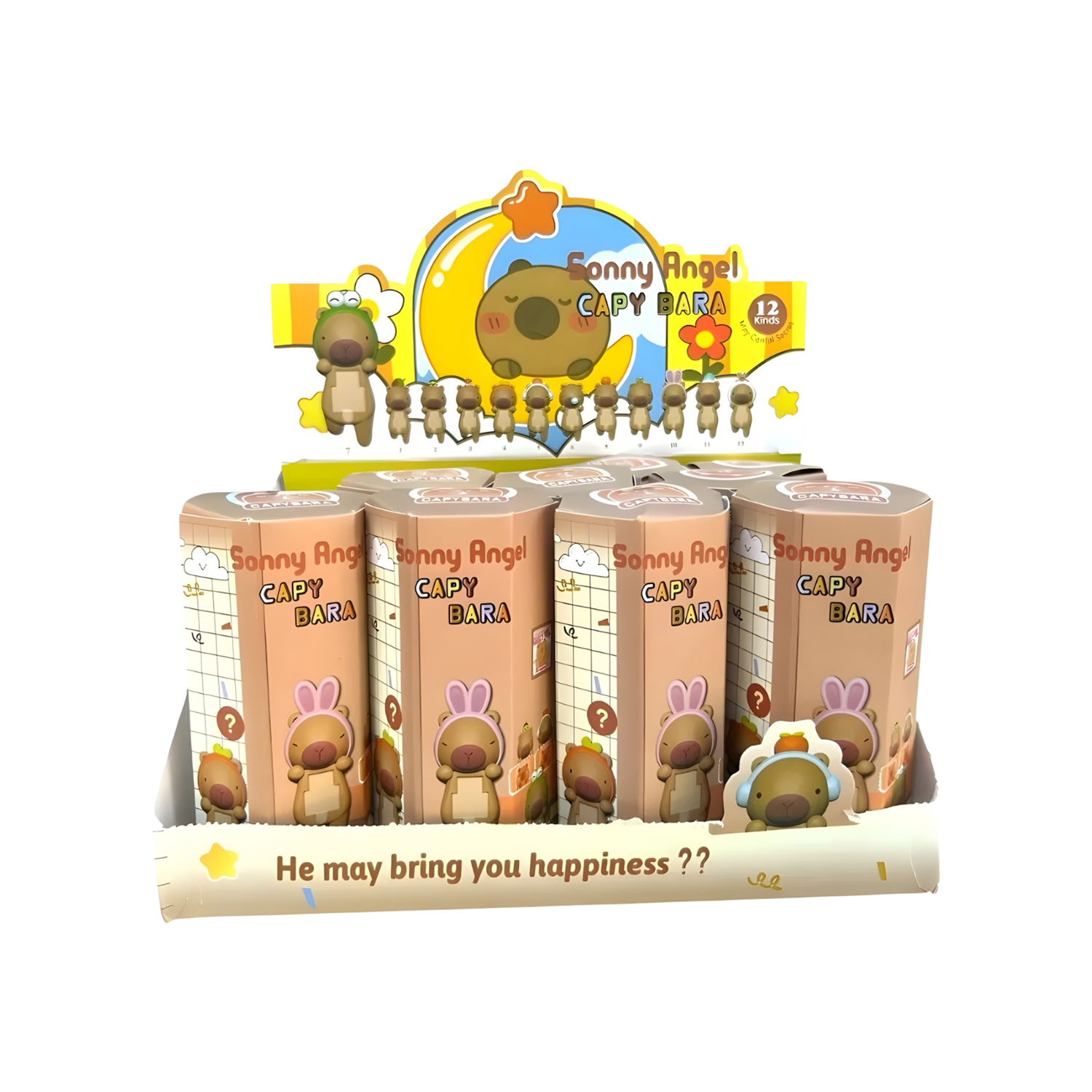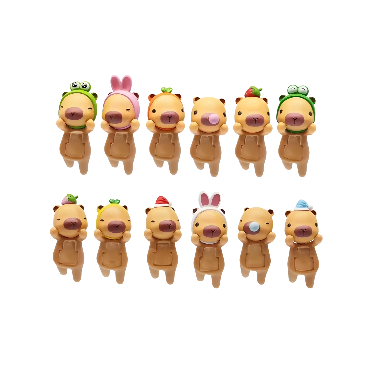 Capybara temalı oyuncak mini figürler, her pakette farklı bir tasarım sunan sürpriz konseptiyle koleksiyon ve hediye için eğlenceli bir deneyim sağlar.