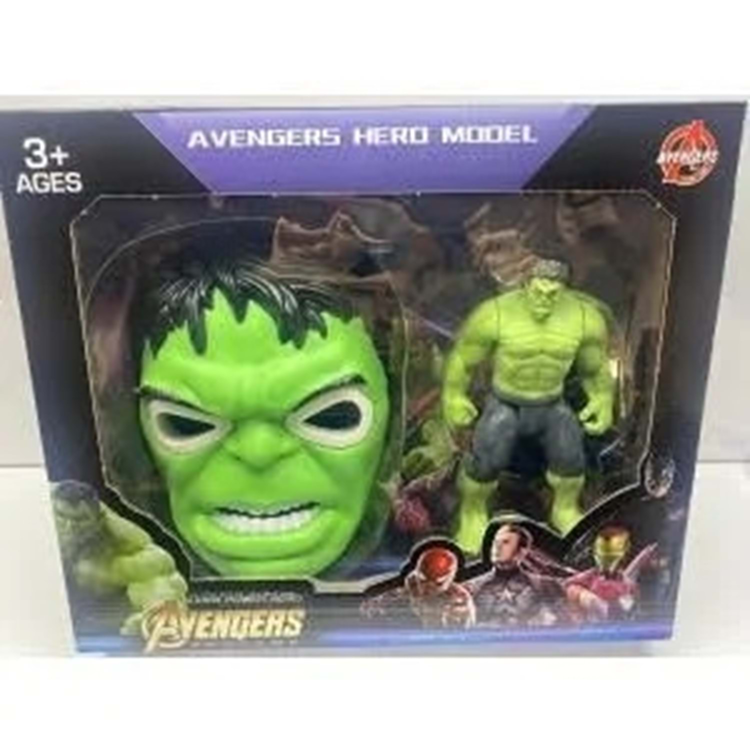İçerik: Hulk maskesi ve karakter figürü