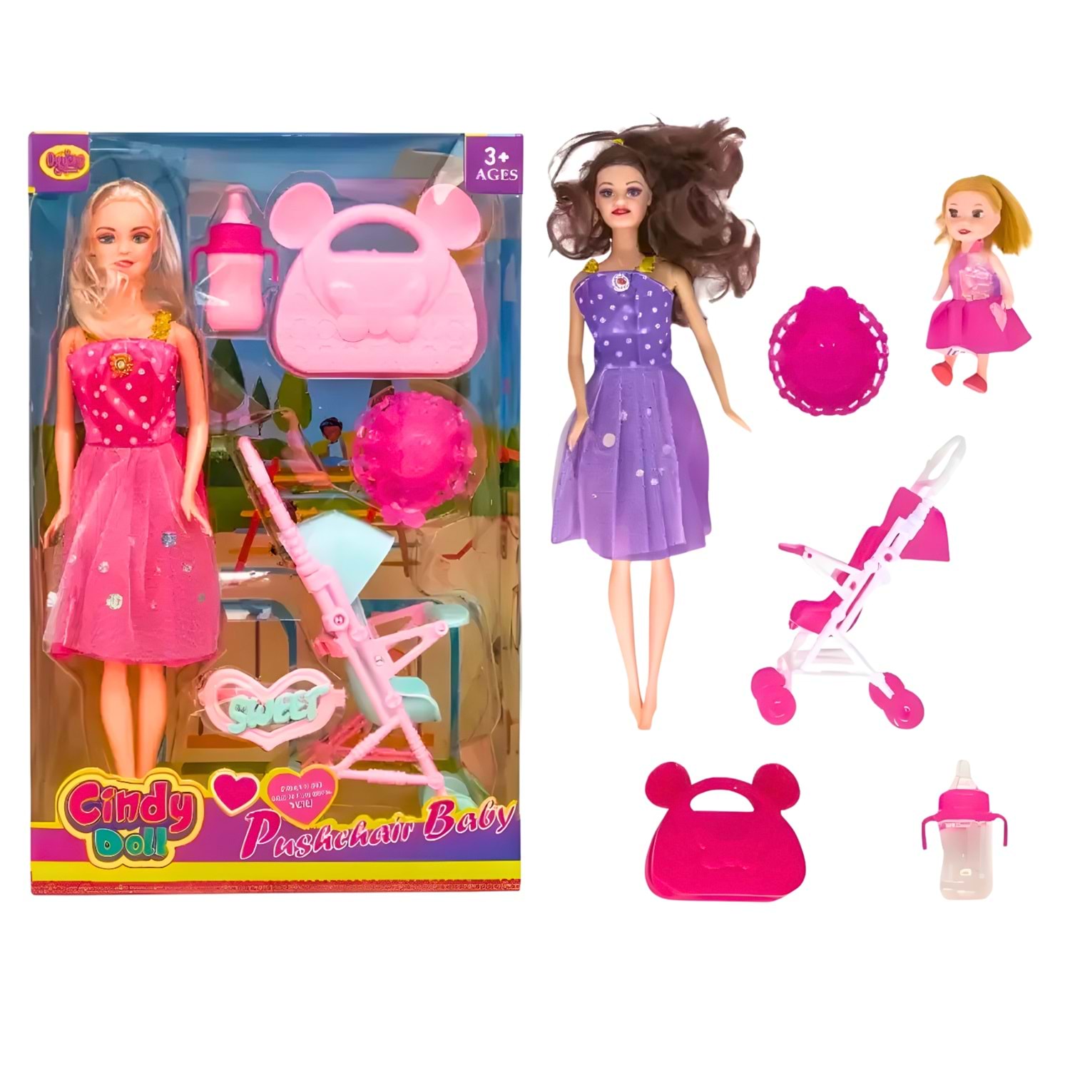 Cindy Doll Bebek Seti – Bebek Arabalı ve Aksesuar Hediyeli Oyuncak Bebek Seti – Kız Çocukları İçin Oyuncak