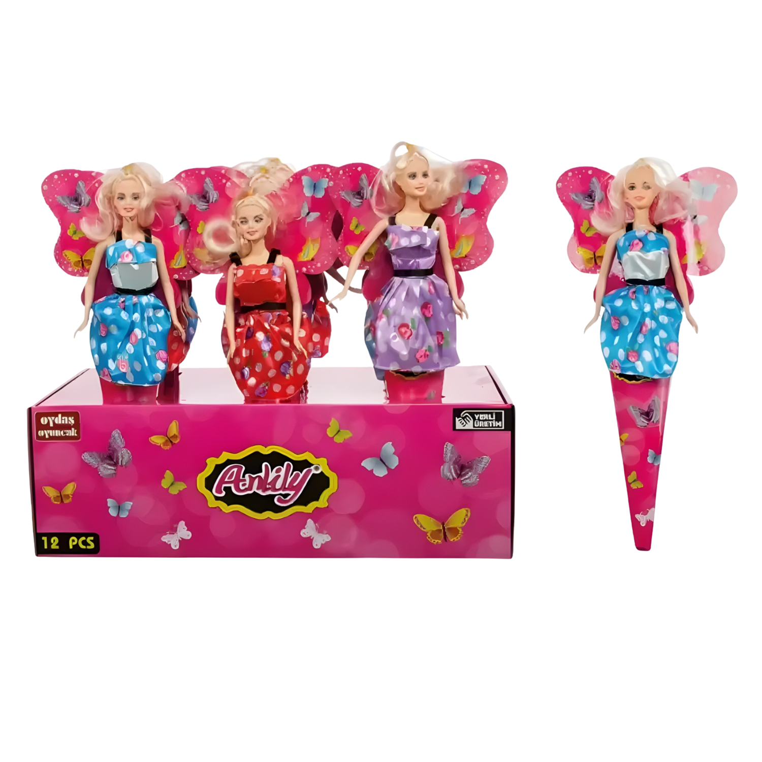 OYDAŞ Anlily Standlı Külah Bebek, şık elbiseleri, kelebek kanat detayları ve külah ambalajlı özel tasarımı ile çocukların ilgisini hemen çeken eğlenceli bir oyuncaktır. Standlı yapısı sayesinde dik şekilde sergilenebilir; oyun sonrası düzenli şekilde muhafaza edilebilir. Renkli ve sevimli görünümüyle hem oyun hem de hediye amaçlı idealdir.