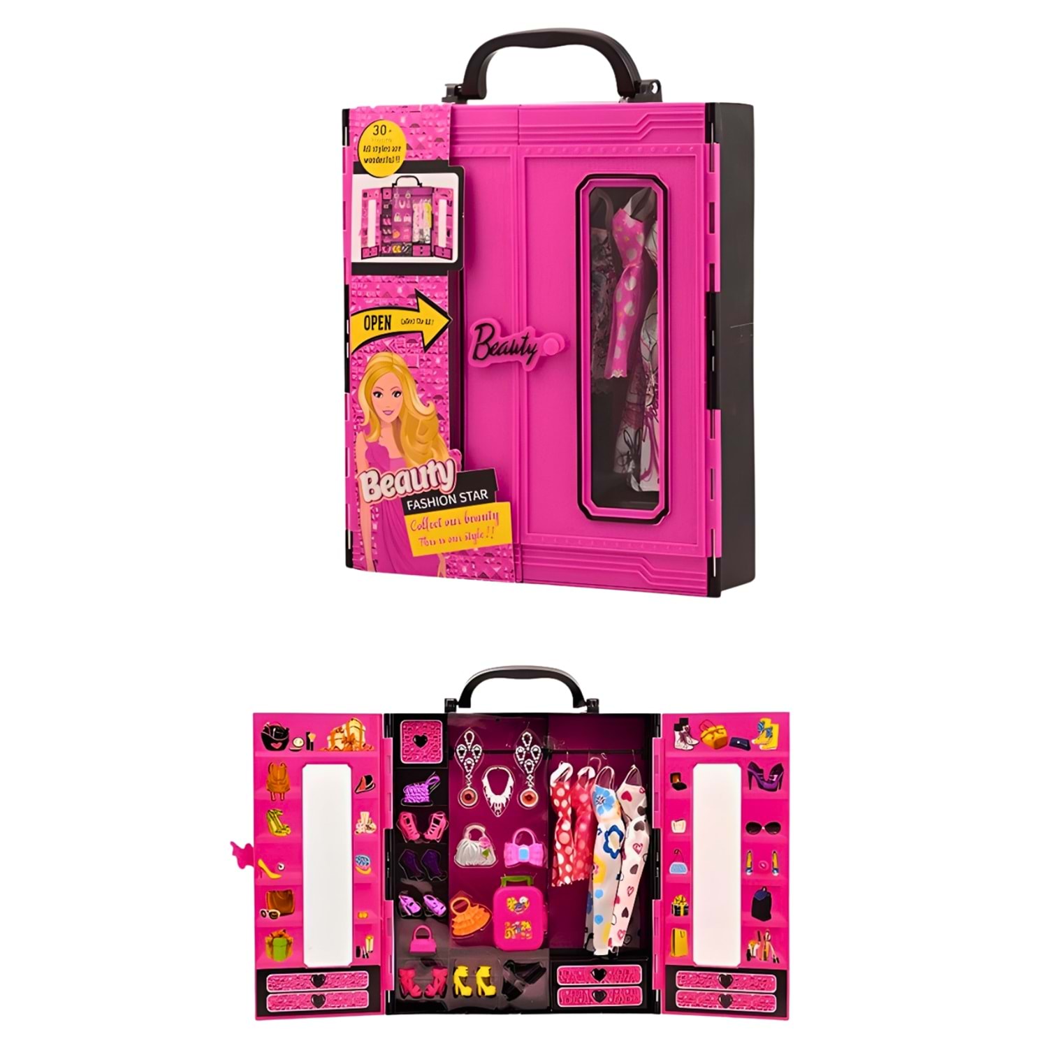 beauty gardırop, oyuncak gardırop seti, moda oyuncağı, beauty fashion star, kız çocuk oyuncak seti, elbiseli oyuncak, aksesuar seti, taşınabilir gardırop oyuncak