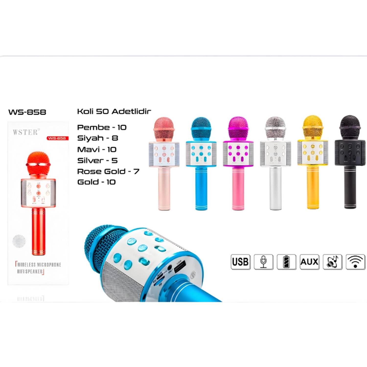 wster ws858, bluetooth mikrofon, karaoke mikrofon, hoparlörlü mikrofon, kablosuz mikrofon, çocuk karaoke mikrofonu, taşınabilir mikrofon, usb mikrofon
